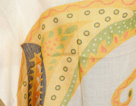 Cannoli-Cream Handloom Pure Pashmina Shawl from Kashmir with Sozni-Embroidery by Hand