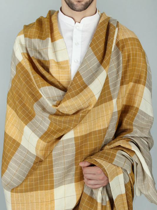 Checkered Pure Pashmina Dushala for Men with Vibrant Color Combo