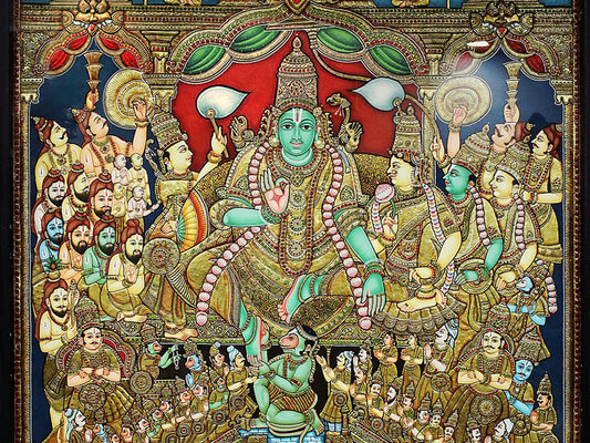 Sri Ram Pattabhishekam Tanjore Painting With Frame l Traditional Colors with 24 Karat Gold