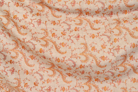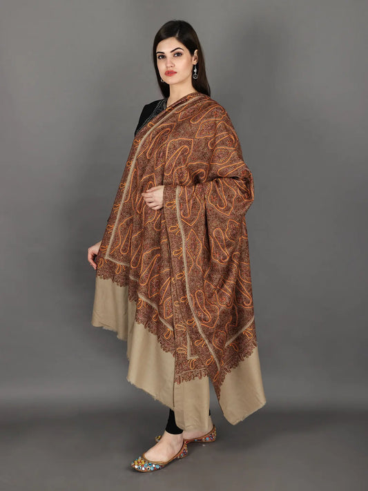 Summer-Sand Handloom Pure Pashmina Shawl from Kashmir with Sozni-Embroidery by Hand