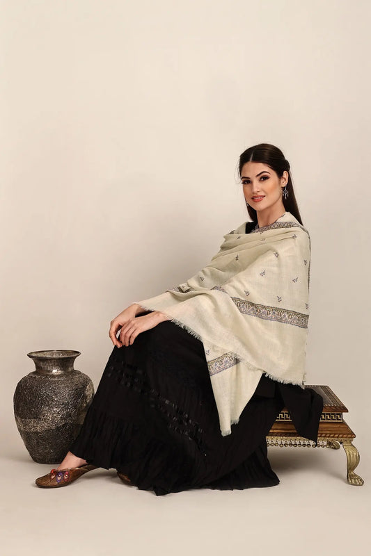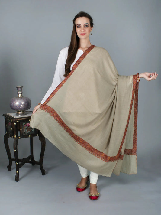 Peyote Pure-Pashmina Shawl From Srinagar with Sozni Embroidery on Border By Hand