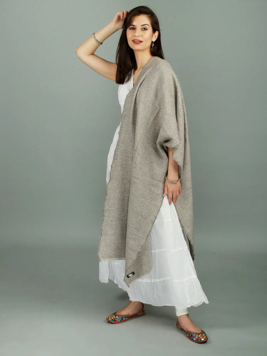 Silver-Gray Checkered Handwoven Pure Pashmina Stole