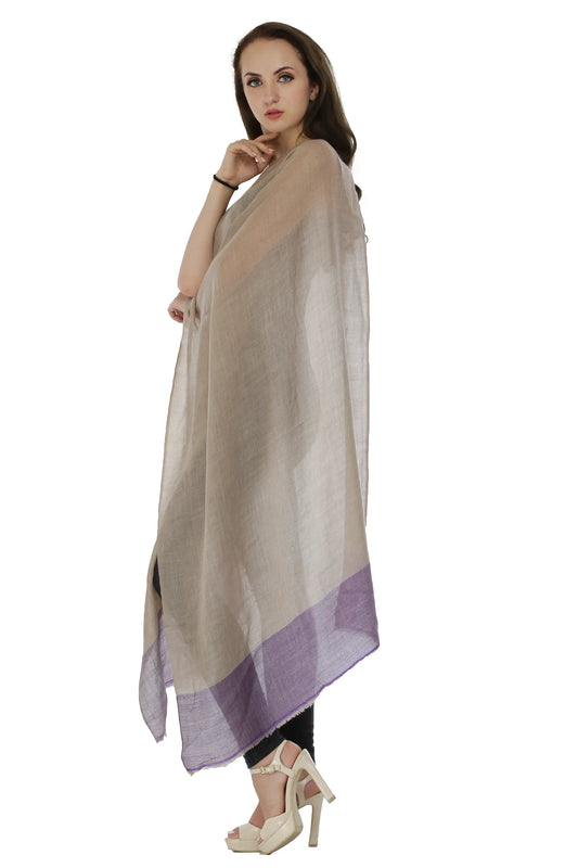 Savannah-Tan Pashmina Woolen Stole With Contrast Purple Broad Border From Nepal