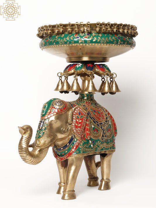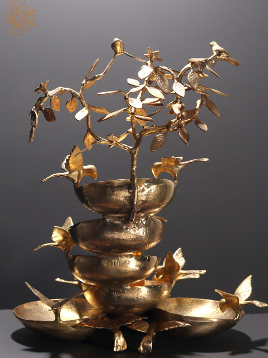 20" Brass Parrot Urli with Stand | Home Decor Showpiece