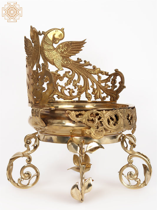 20" Brass Parrot Urli with Stand | Home Decor Showpiece