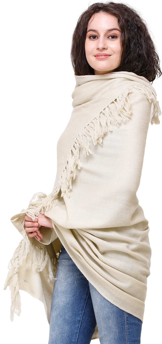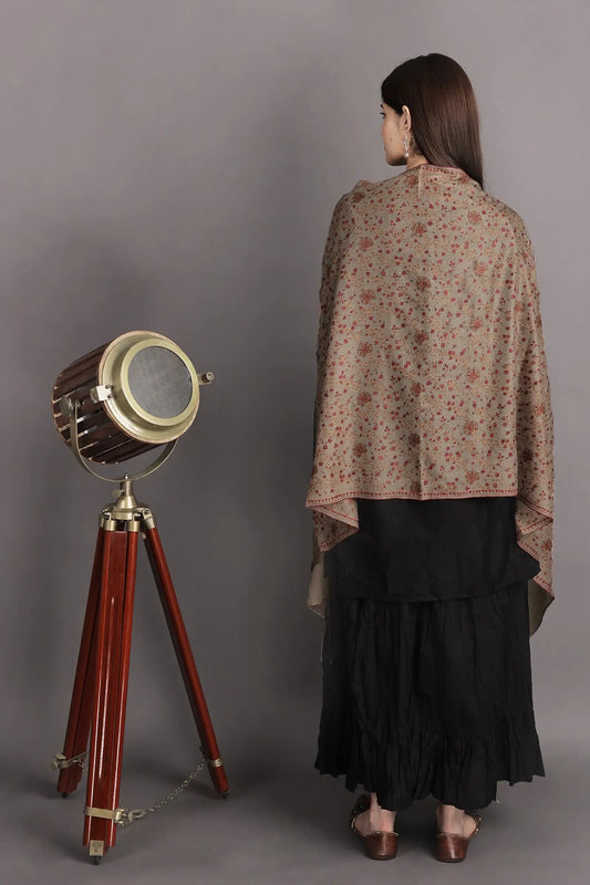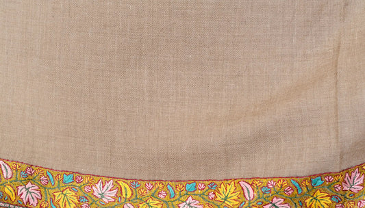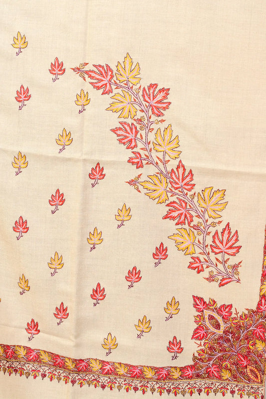 Almond-Buff Pashmina Shawl from Kashmir with Hand Embroidered Maple Leaves