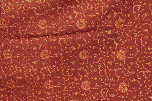 Burnt-Orange Pure Pashmina Shawl with Sozni Embroidered Flowers All-Over