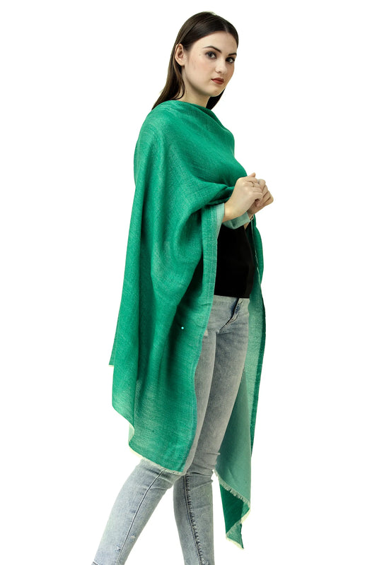 Brilliant-White Semi-Cashmere Stole from Amritsar with Woven Border